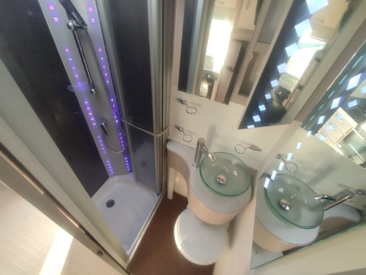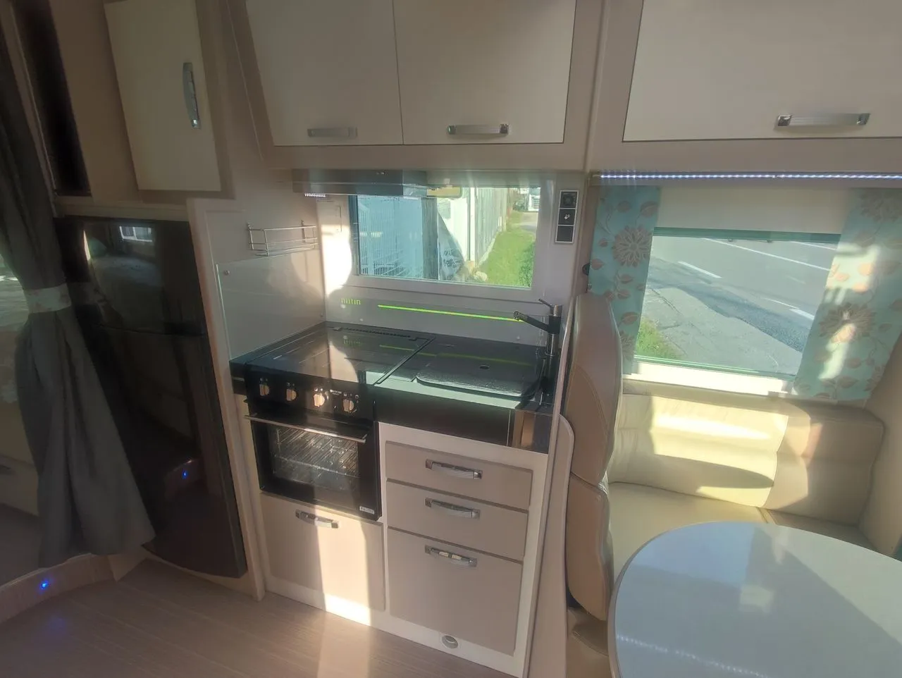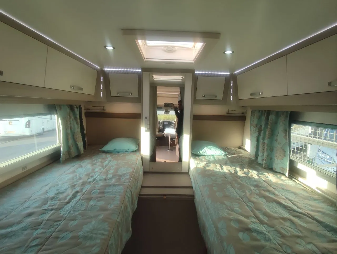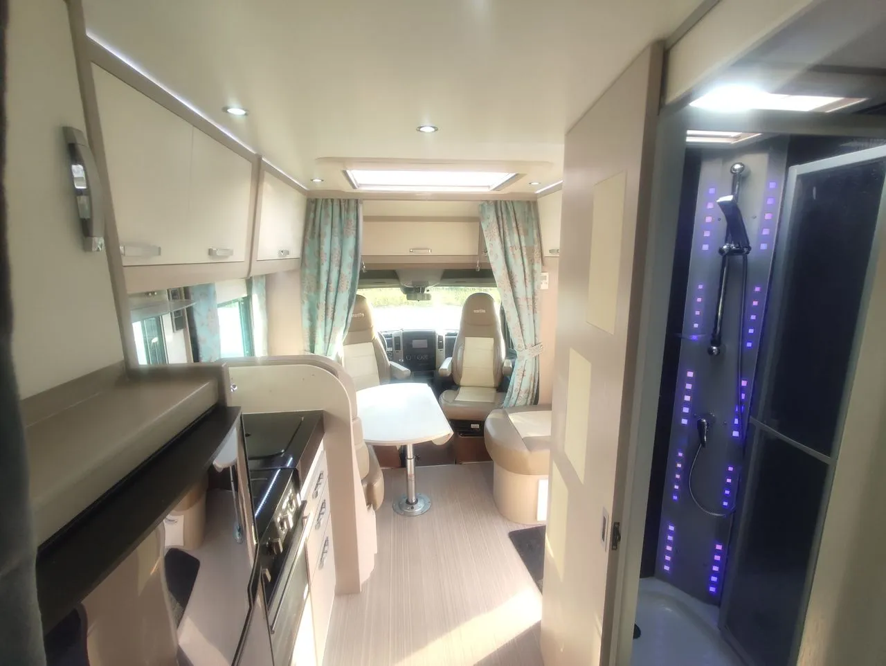 Equipements : Caméra + Radar de recul, 1 Panneau solaire, TV Smart, Antenne satélite automatique, Four gaz, Hotte aspirante, Store exterieur, 2 Batteries cellule 100 AH AGM, Vitres et volets éléctriques