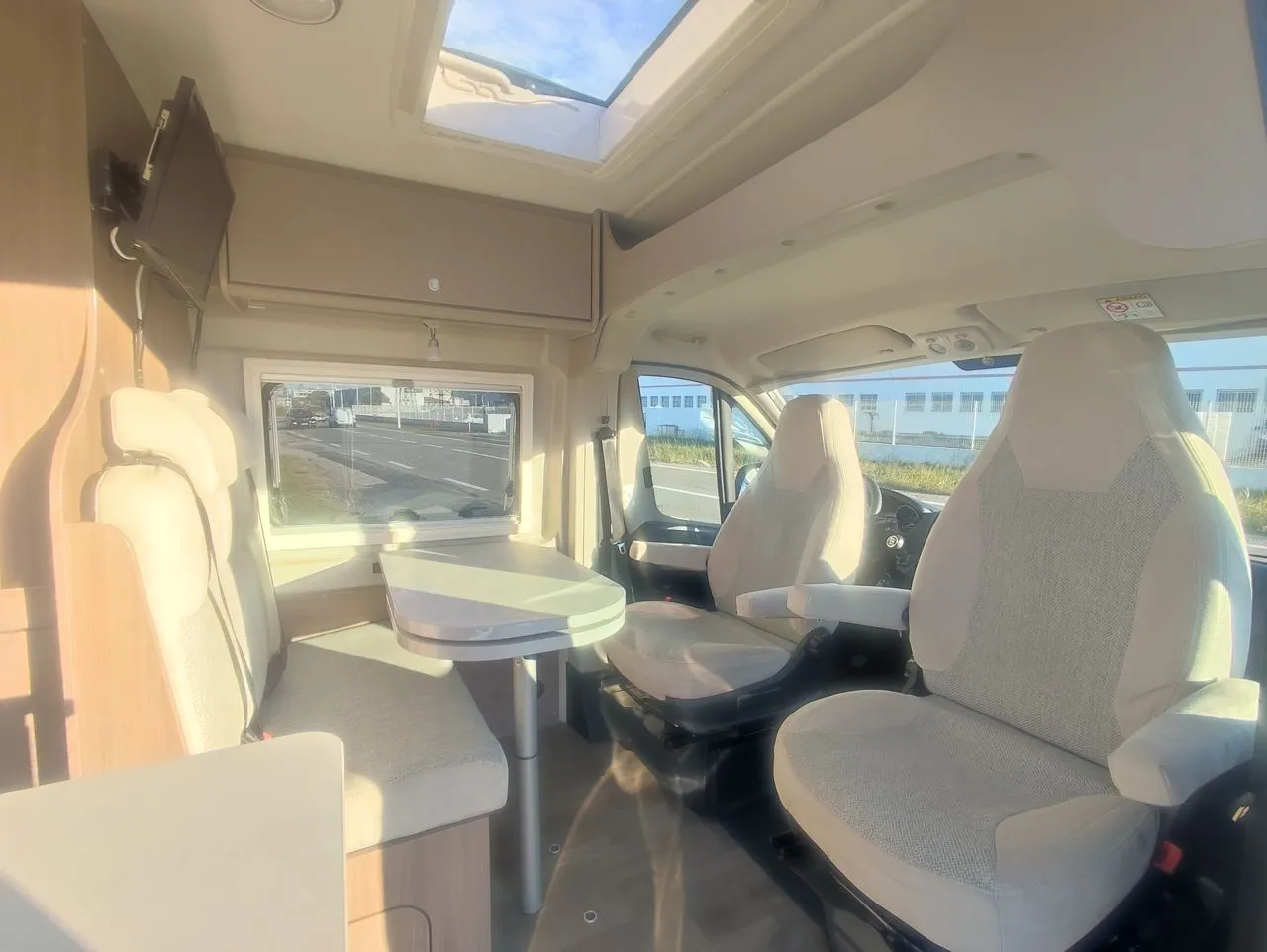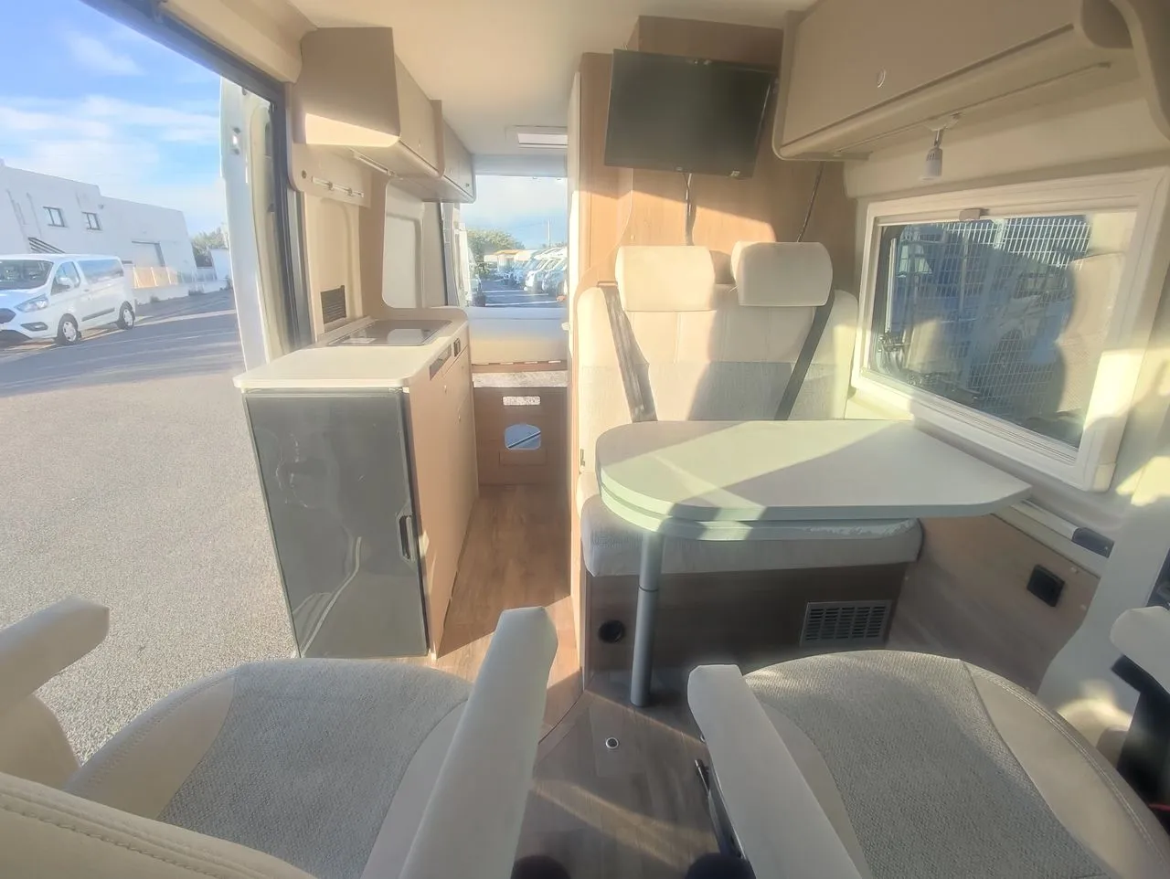 Store exterieur, Antenne omnidirectionnelle, Occultants Remis cabine, Panneau solaire, Tv ecran plat, Station numérique multimédia, Caméra de recul, Climatisation cabine, Marche pied éléctrique, Fermeture centralisée, Prises 12V,USB, USB-C et 220v.